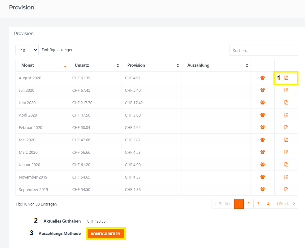 Die Provisionsabrechnungen werden Ihnen anfangs Monat per Mail zugestellt. Diese können Sie jederzeit als pdf herunterladen.